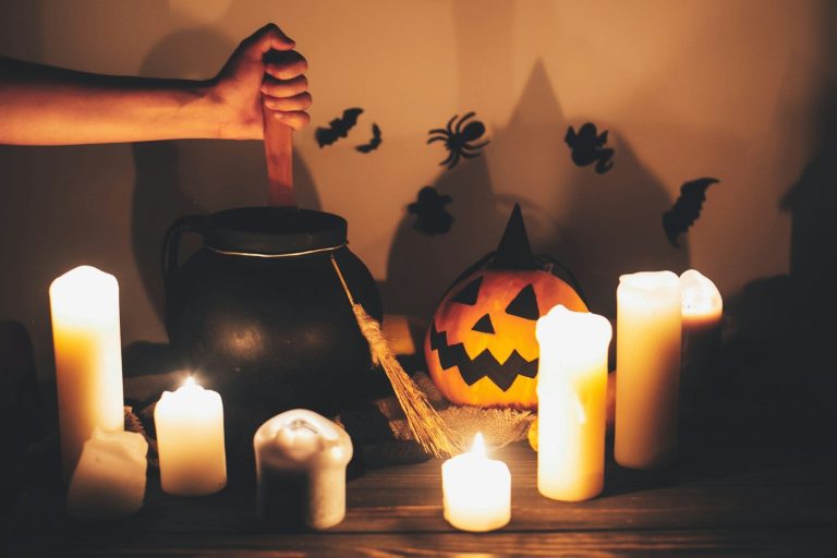 Kerzen und Kürbisse